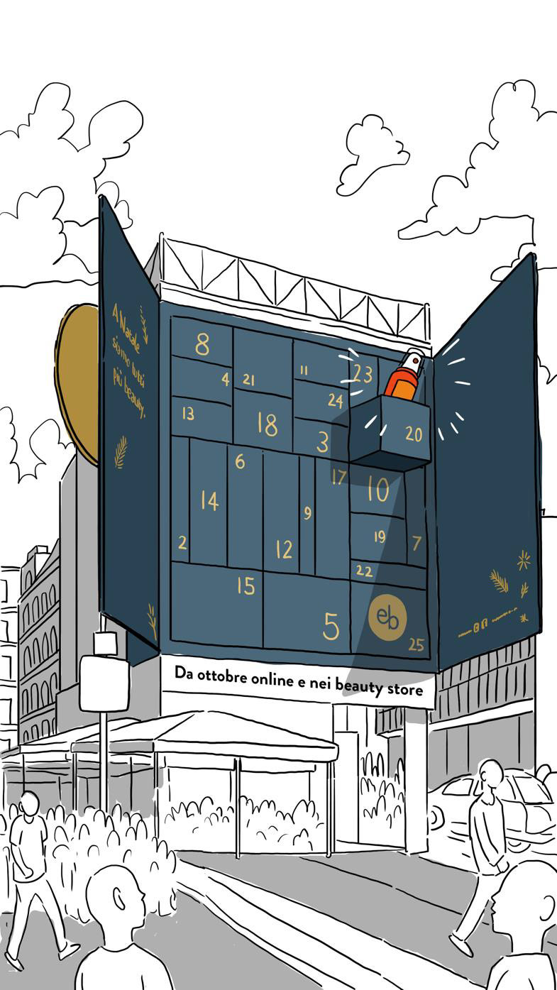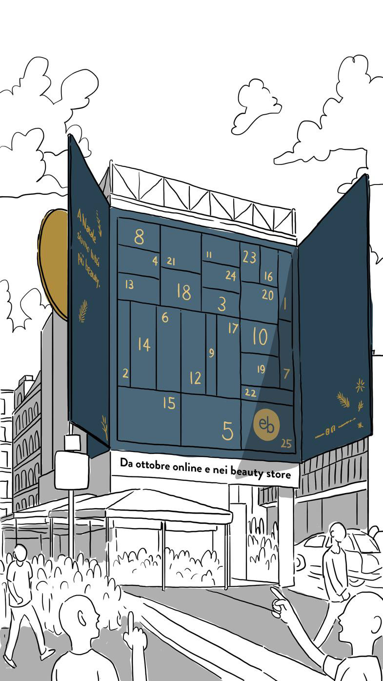 Per il lancio del calendario dell’avvento 2024 di eb profumerie, abbiamo realizzato un video Fake Out of Home che trasforma la città in uno spettacolo di pura magia natalizia.